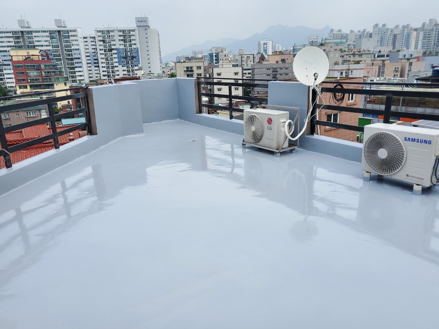 에어컨 실외기 주변과 같은 세세한 부분까지 신경 써서 작업한 흔적이 보이나요? 작업 도중 옥상의 접근성이 제한되긴 했지만, 이런 결과를 본다면 그 정도 불편함은 감수할 만합니다.